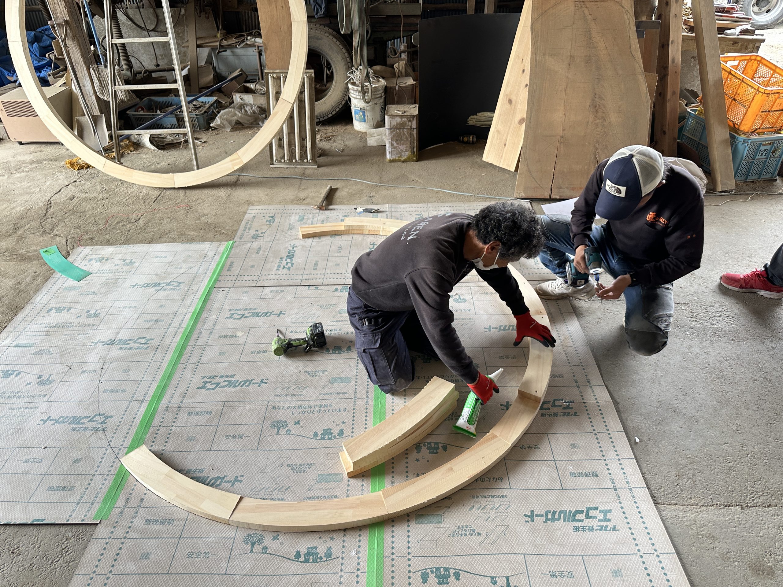 ↓ 枠が完成したので設置場所に移動させました