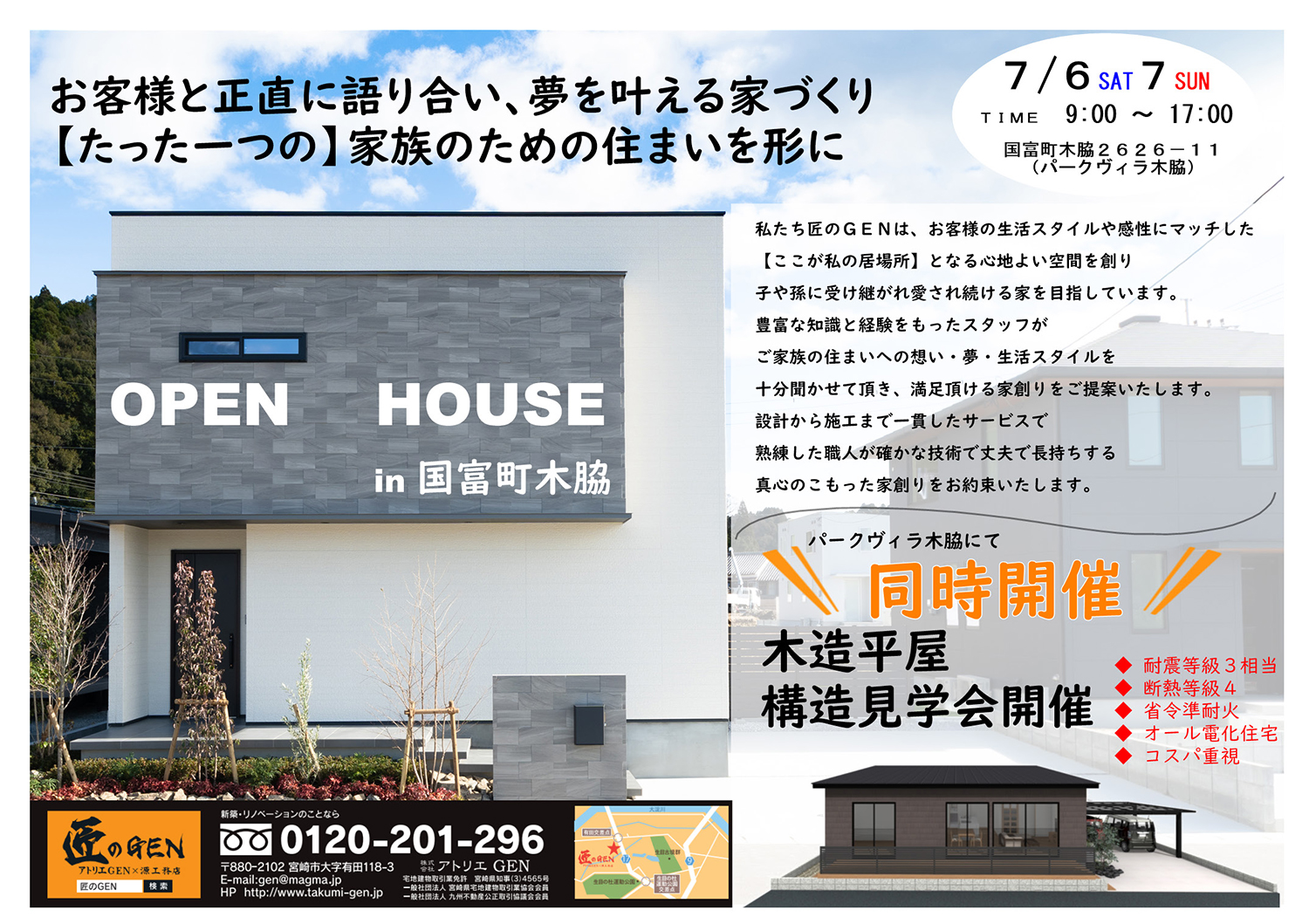 国富モデル見学会・構造見学会のお知らせ(国富町木脇)7/6(土)・7/7(日)